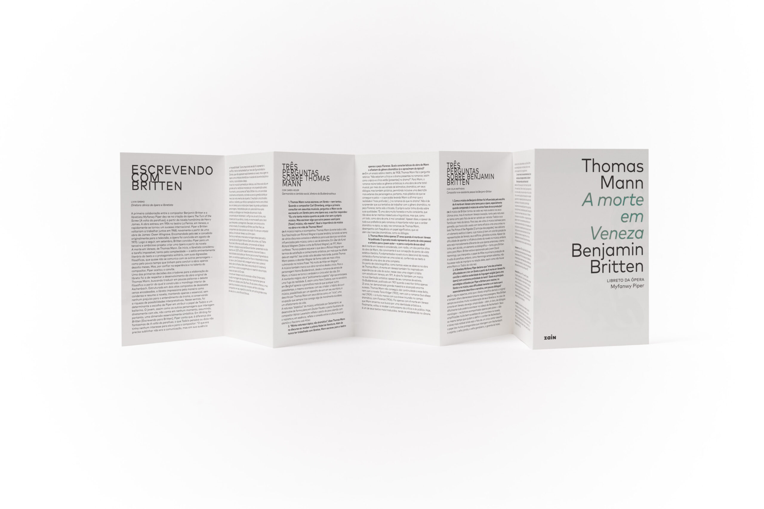 ColeçãoLibro&Libreto: A morte em Veneza é o segundo título da nova coleção da Zain dedicada à publicação de obras de ficção que foram adaptadas para a ópera. Os títulos apresentam a obra original e sua adaptação para libreto (texto dramático cantado na ópera), além de posfácio. Os livros são publicados sempre em em duas edições: brochura e box edição especial (tiragem limitada).